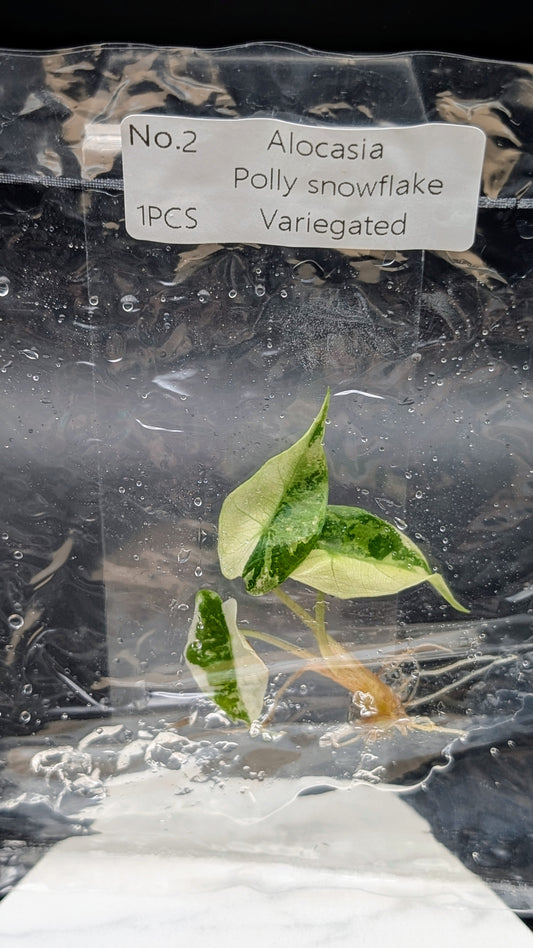 Alocasia Polly Snowflake Pink Variegata im TC Beutel