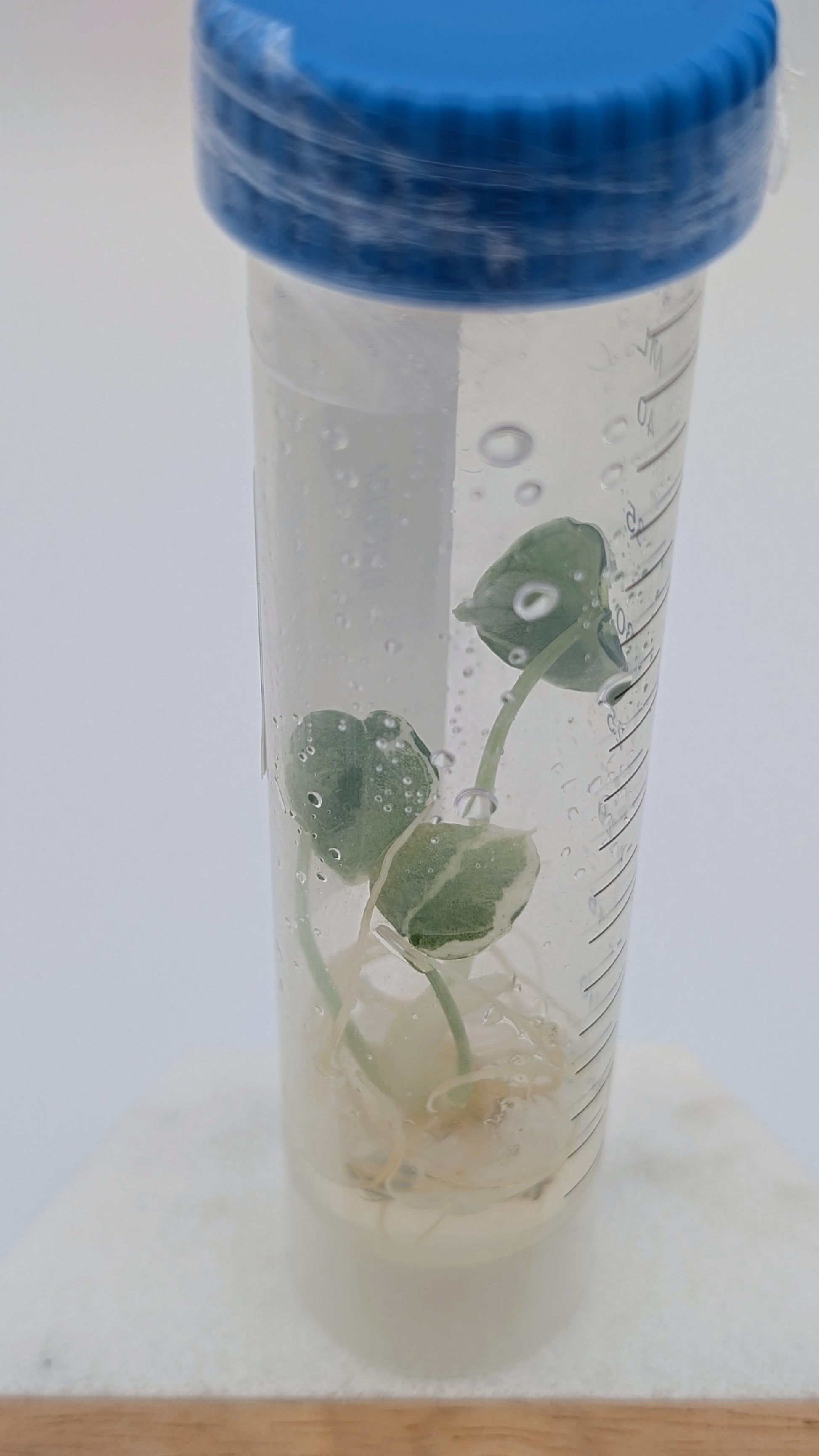 Deine Alocasia 'Ninja Albo' kommt in einer sterilen TC-Flasche –