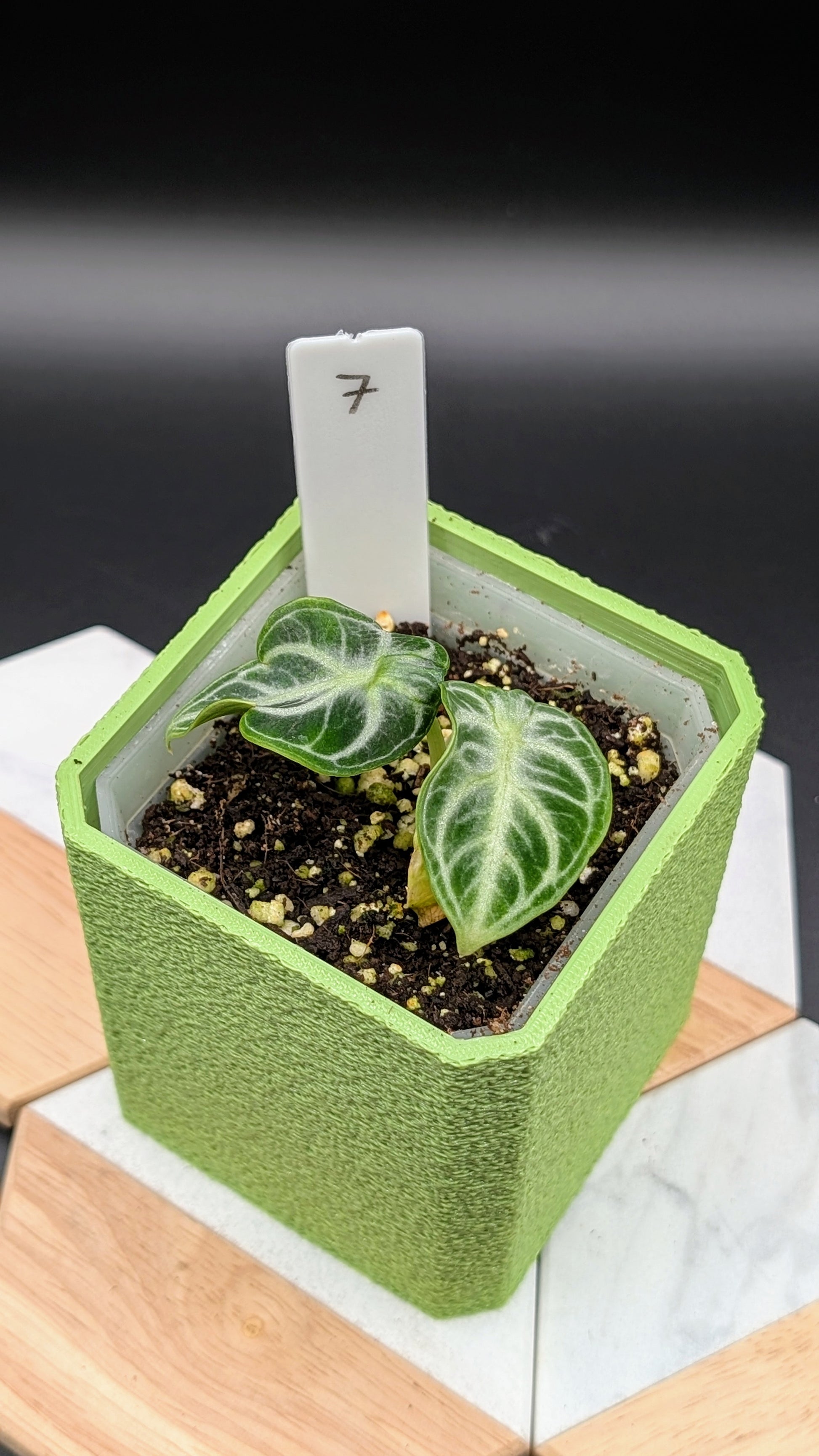 Die Alocasia Ninja Variegata ist eine extrem seltene und faszinierende Alocasia-Sorte, die mit ihrer tiefdunklen, fast schwarzen Blattfarbe und einzigartigen weiß-grünen Panaschierungen beeindruckt. Die samtige, fast lederartige Textur der Blätter verleiht ihr ein luxuriöses Aussehen, während die auffälligen, variegierten Muster jedes Blatt zu einem individuellen Kunstwerk machen.